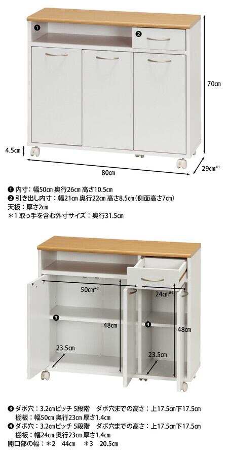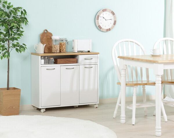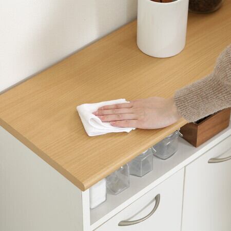 幅80×奥行29×高さ70cmのサイズで、コンパクトながら多機能なミニキッチンカウンター KC-8073は、小さなキッチンにもぴったりフィットします。明るい木目調のデザインが、どんなインテリアにもマッチし、お部屋を優しい雰囲気に演出します。