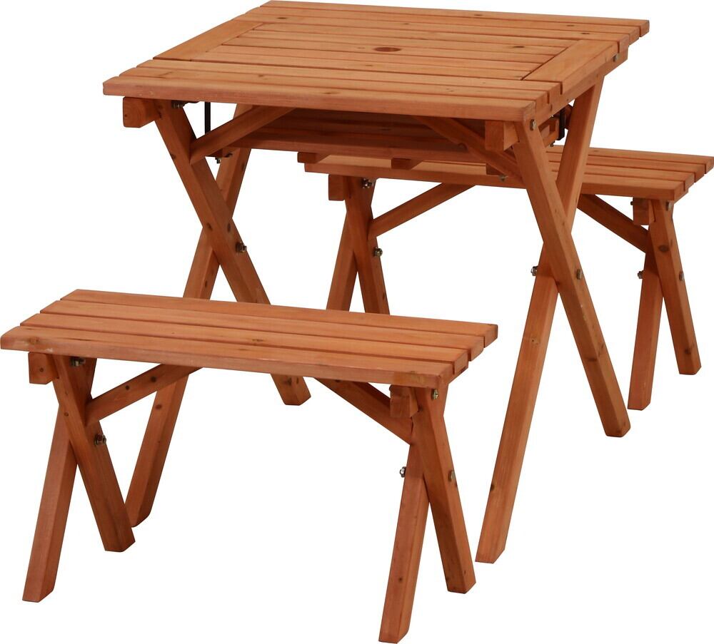 杉材BBQテーブル&ベンチセット ミニ コンロスペース付