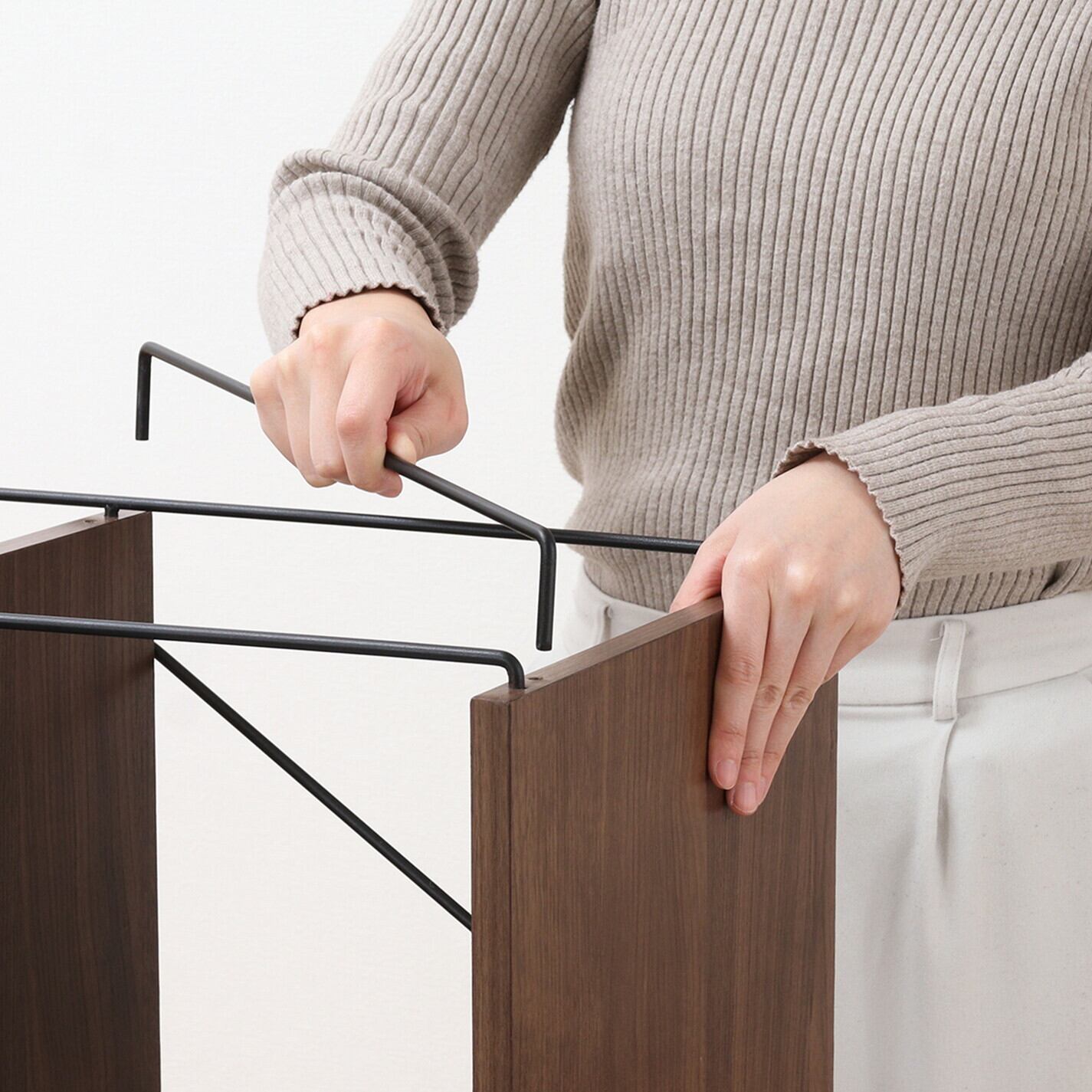 棚板の穴にワイヤーフレームを差し込むだけで完成する「ワイヤーロックシステム」を採用したシリーズで、手軽におしゃれなインテリアを楽しめます。