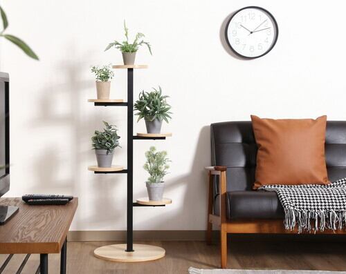 お花や小型の観葉植物などよりおしゃれに楽しむことができるディスプレイラックです。植物と相性のいいスチール×木目のデザインで、インテリアによく馴染みます。