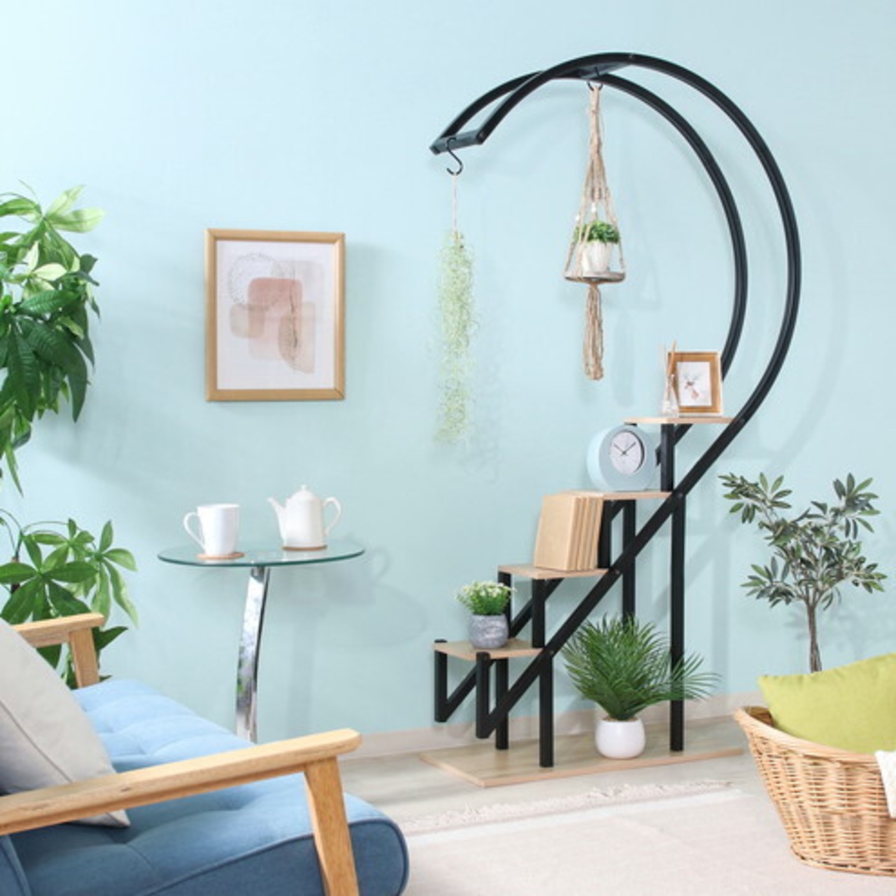 小型の観葉植物などをよりおしゃれに楽しむことができるディスプレイラックです。グリーンと相性のいいスチール×木目のデザインで、インテリアによく馴染みます。