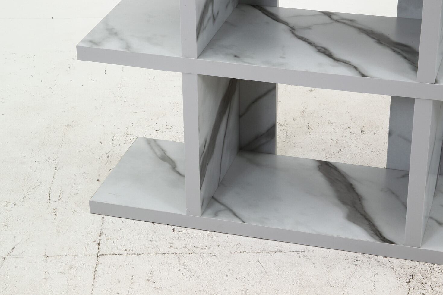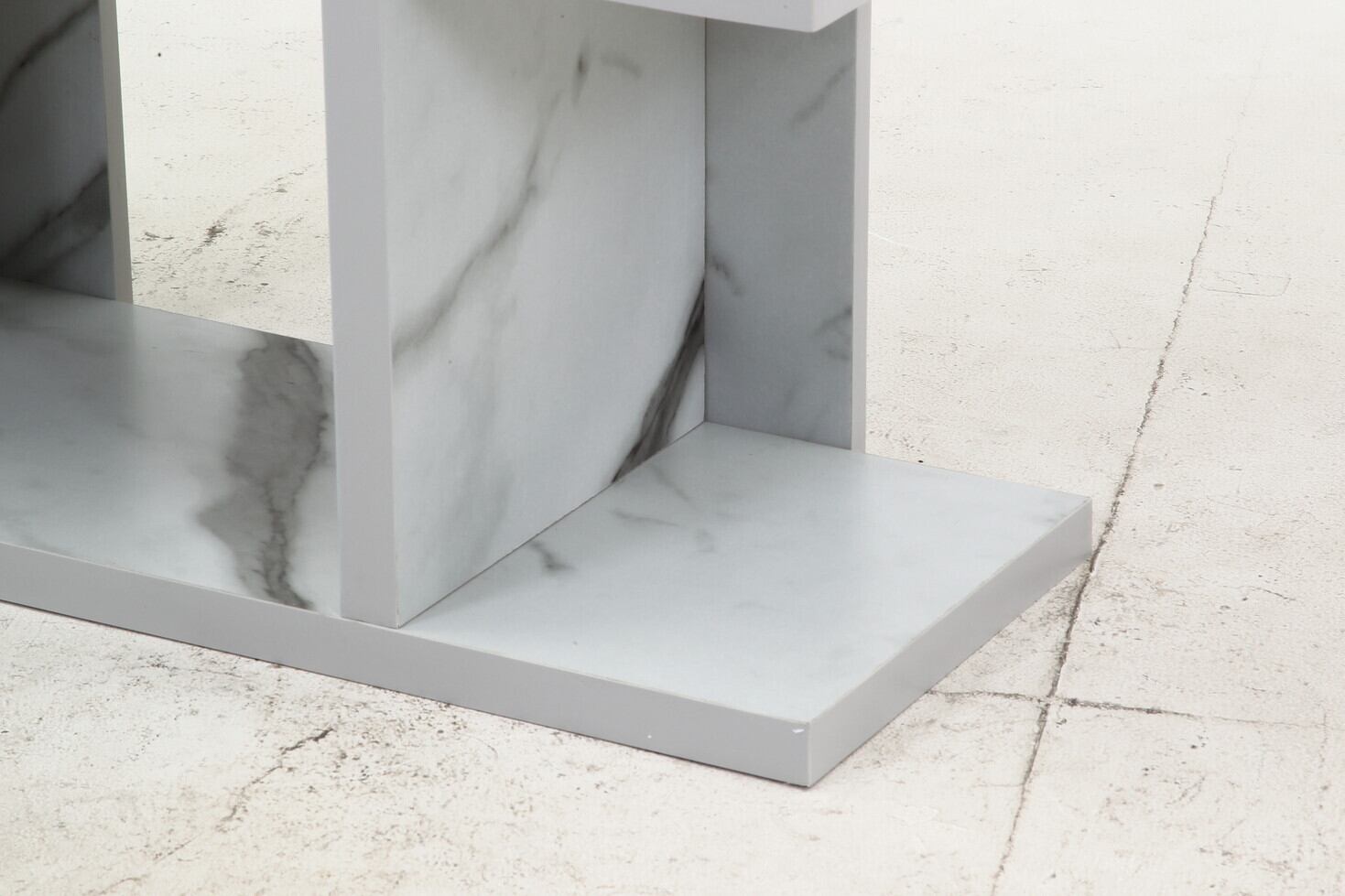 スタイリッシュな大理石デザインは、どんなお部屋にもマッチし、サイドボードやテーブルとしての利用もできます。上部の棚はお気に入りの本や雑貨を飾るのにぴったりで、下段のスペースは生活用品や収納に大活躍します。