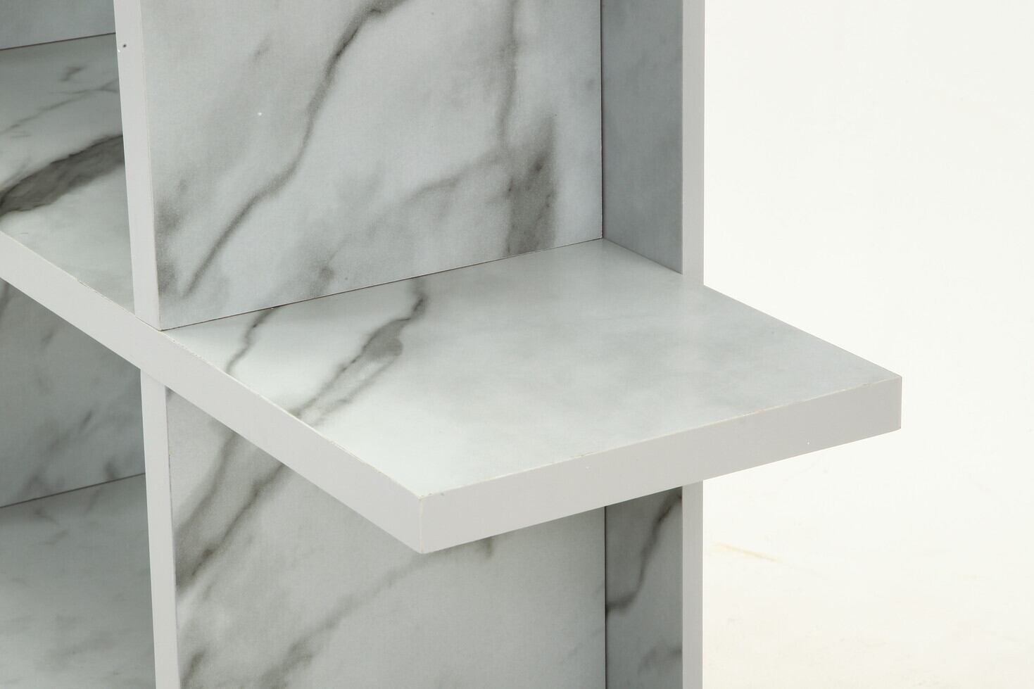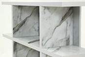 4段のスペースを活かして、書籍やインテリア雑貨を自由にディスプレイできます。大理石調の天板は、上品で高級感があり、さまざまなインテリアスタイルに調和します。奥行310mmのコンパクトさながら、存在感を放つスタイルが魅力です。