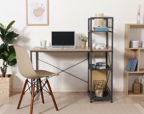 収納ラックは左右どちらでも設置OK!シンプルワークデスク