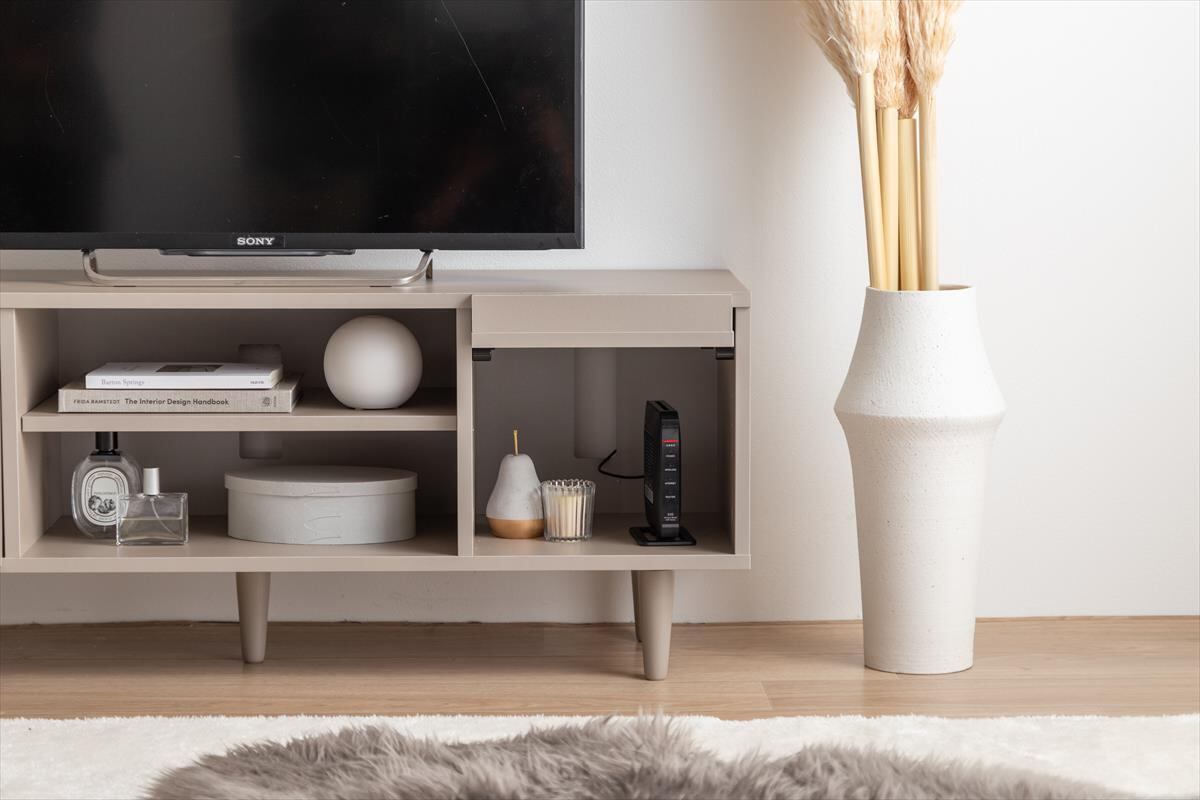 このフラップ扉付テレビ台を取り入れることで、リビングルームが一段とスタイリッシュになり、居心地の良いエンターテインメントスペースをお楽しみいただけます。デザイン性と機能性を兼ね備えた『Carina』は、特別な居住空間を求める方にぴったりのアイテムです!