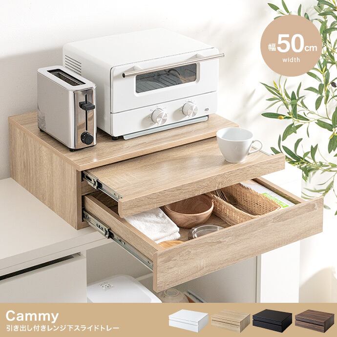 【幅50cm】Cammy 引き出し付レンジ下スライドトレー