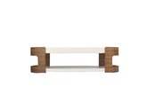 最高級ウォールナット材とホワイト鏡面仕上げのテーブル