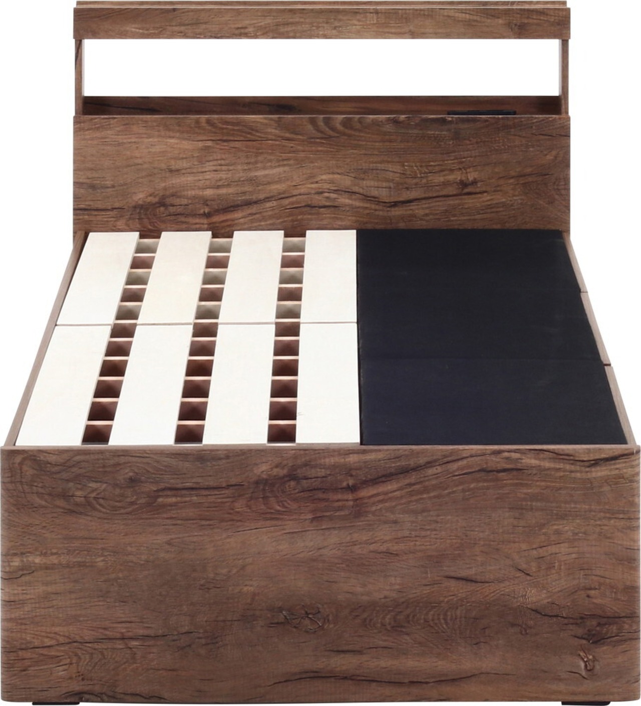 奥行10cmのヘッドボードには、スマートフォンや目覚まし時計などを置くことができます。