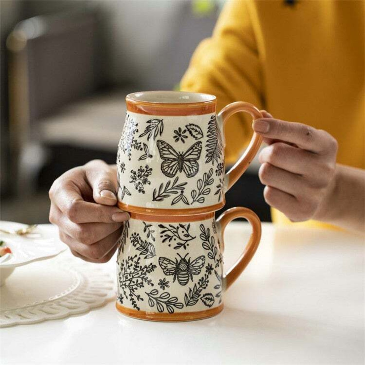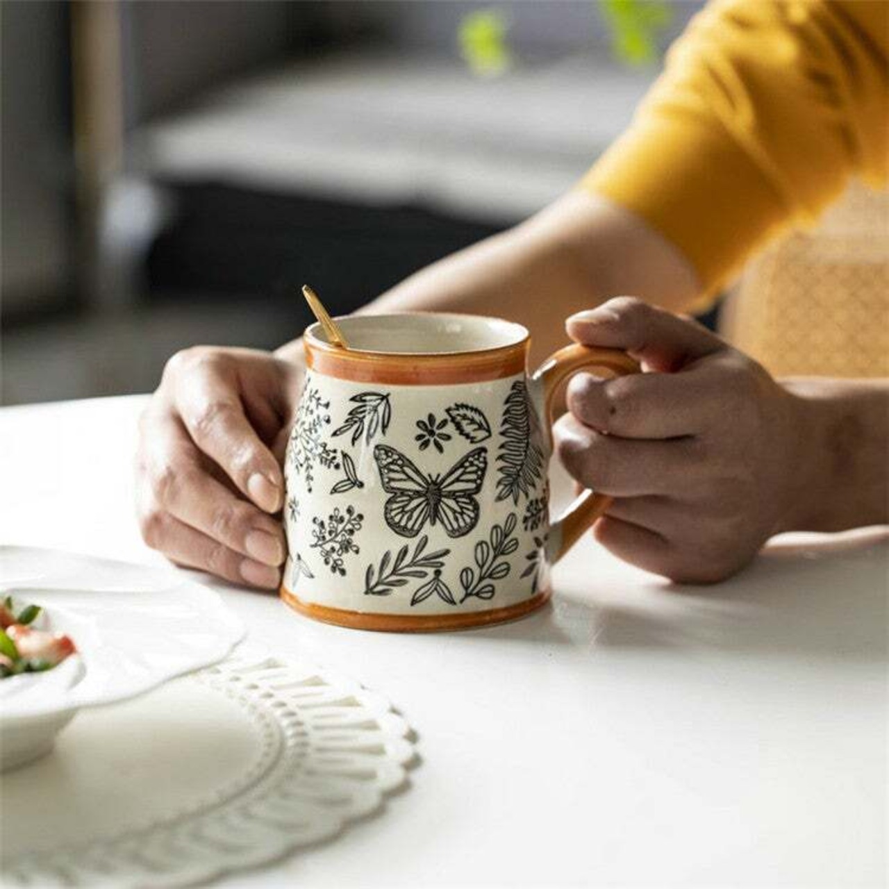 ラグジュアリーな雰囲気のマグカップです。大容量なので、たっぷりのコーヒーを楽しむことができます。セラミック素材で作られており、高品質な作りなので長くご使用いただけます。ホームパーティーや特別な日の朝食にぴったりです。また、ギフトとしても最適です。ライトラグジュアリーなコーヒータイムを演出したい方に、ぜひおすすめです。