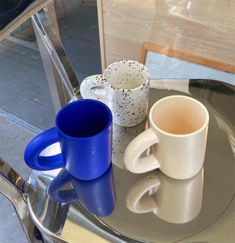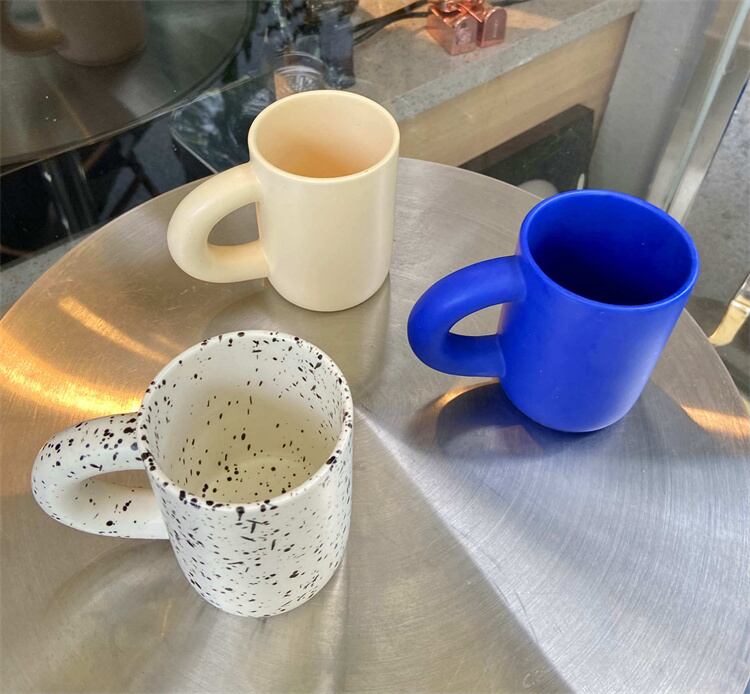 大きな耳、セラミック製、厚いハンドル、スプラッシュインクデザイン