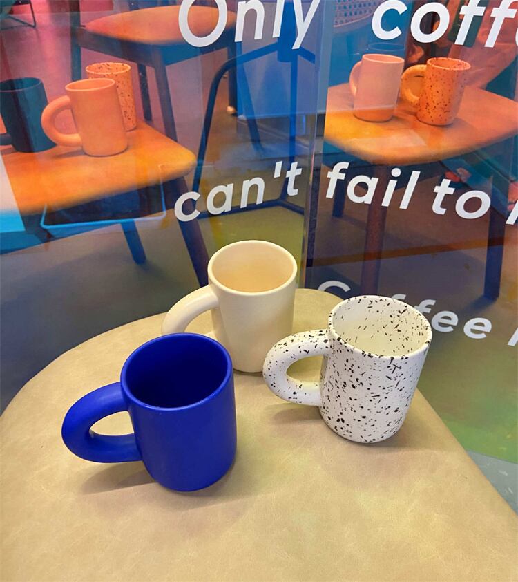 マグカップが、あなたのコーヒータイムを豊かに彩ります。大きな耳と厚いハンドルで持ちやすく、安定感があります。セラミック製なので、お湯や冷たい飲み物を入れても熱さや冷たさを感じずに、お好きな飲み物を心ゆくまで楽しめます。また、スプラッシュインクのデザインがユニークで特別な一杯の時間にぴったりです。