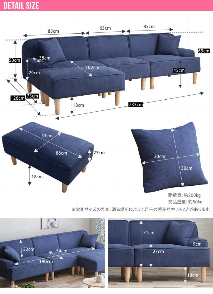 幅:233cm×奥行:53~73cm×高さ:69cm