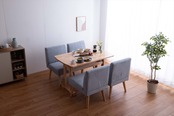 Clara ダイニングテーブル+1人掛けソファ4脚は、天然木の上質感とあたたかみが溢れるダイニングセットです。