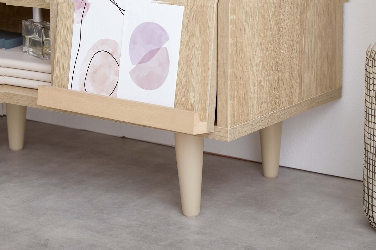 Tonny フラップ扉テレビ台の魅力は、使い勝手の良さだけでなく、デザインにもあります。モダンなスタイリッシュなデザインでありながら、シンプルながらも高級感があります。木目調の高品質な素材を使用しているため、長く愛用できる一つの家具としておすすめです。