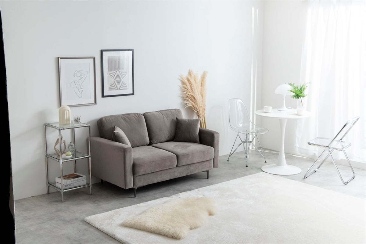 リラックスしたくつろぎのひととき、『Ally(アリー)』の2人掛けベロアソファで至福のひと時をお過ごしください。