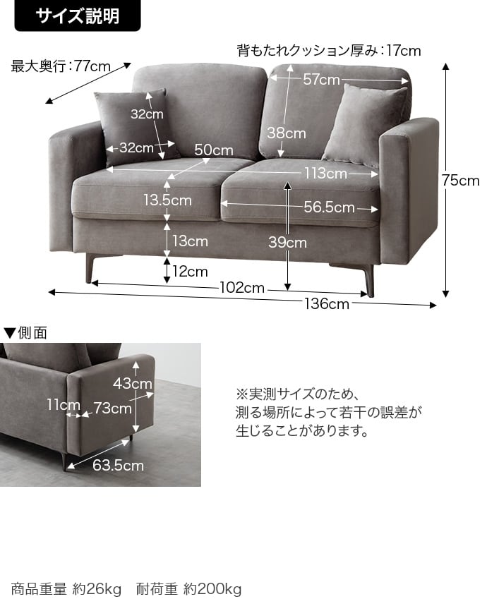 【ソファ】幅136cm×奥行77cm×高さ75cm(座面高:39cm)