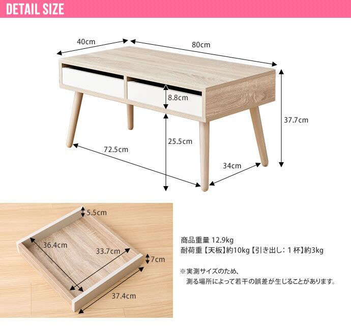 【幅80cm】Rasia 引き出し付きセンターテーブル