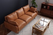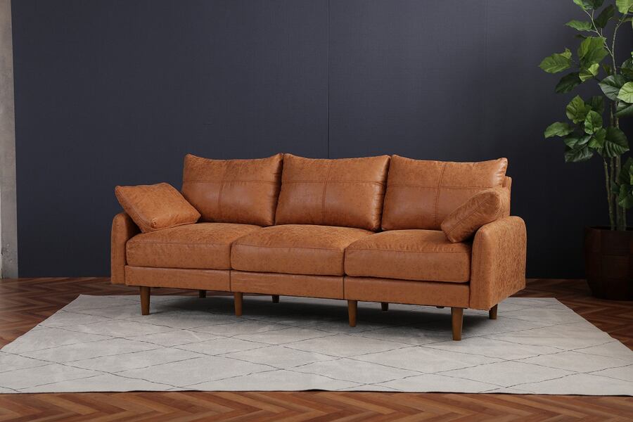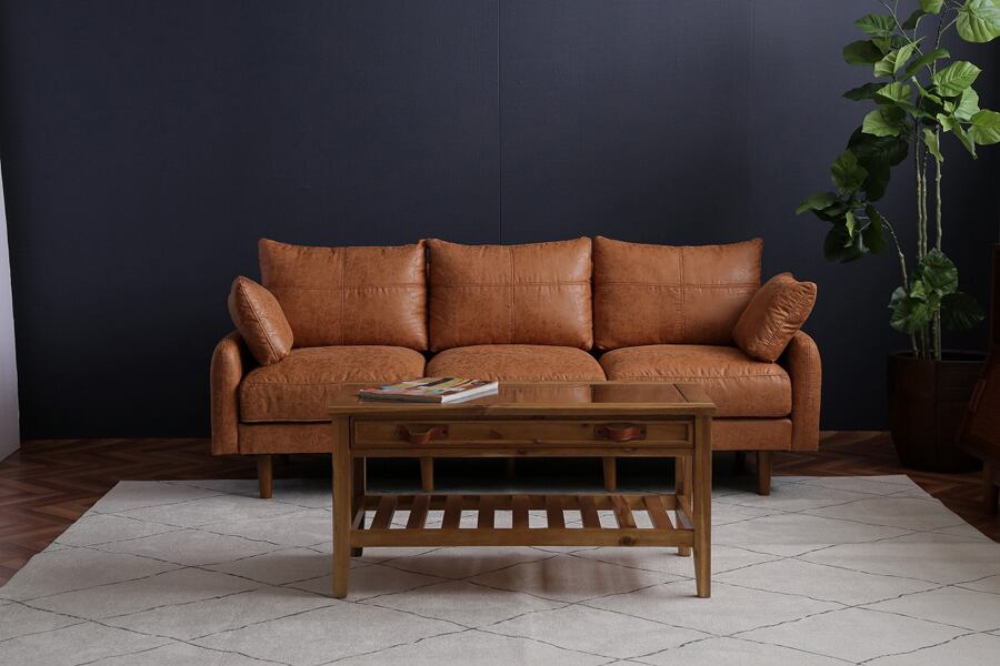 ヴィンテージ感漂うデザインが特徴の『Tango』3人掛けソファ。なめし革風のファブリック生地を使用しており、上品な雰囲気を演出します。座面は程よい硬さで、長時間座っていても疲れにくいのが魅力です。また、腰や肩をしっかりとサポートしてくれるので、快適にくつろぐことができます。シンプルでありながら、存在感のあるデザインなので、どんなインテリアにも馴染みます。リビングやお部屋の中心に置けば、一気に空間がおしゃれになりますよ。『Tango』3人掛けソファで、贅沢なくつろぎのひとときを過ごしませんか。