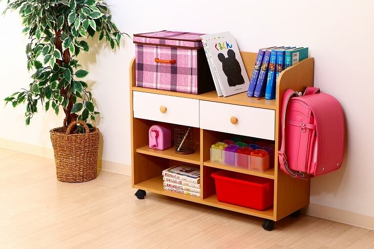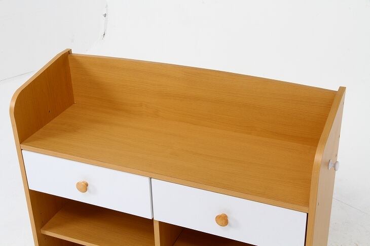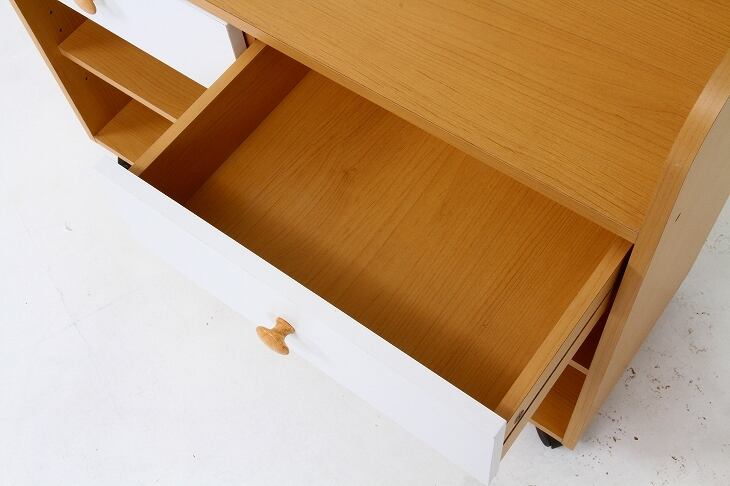 収納部分が4マスあり、引き出し付きなので文房具などもしまえます。