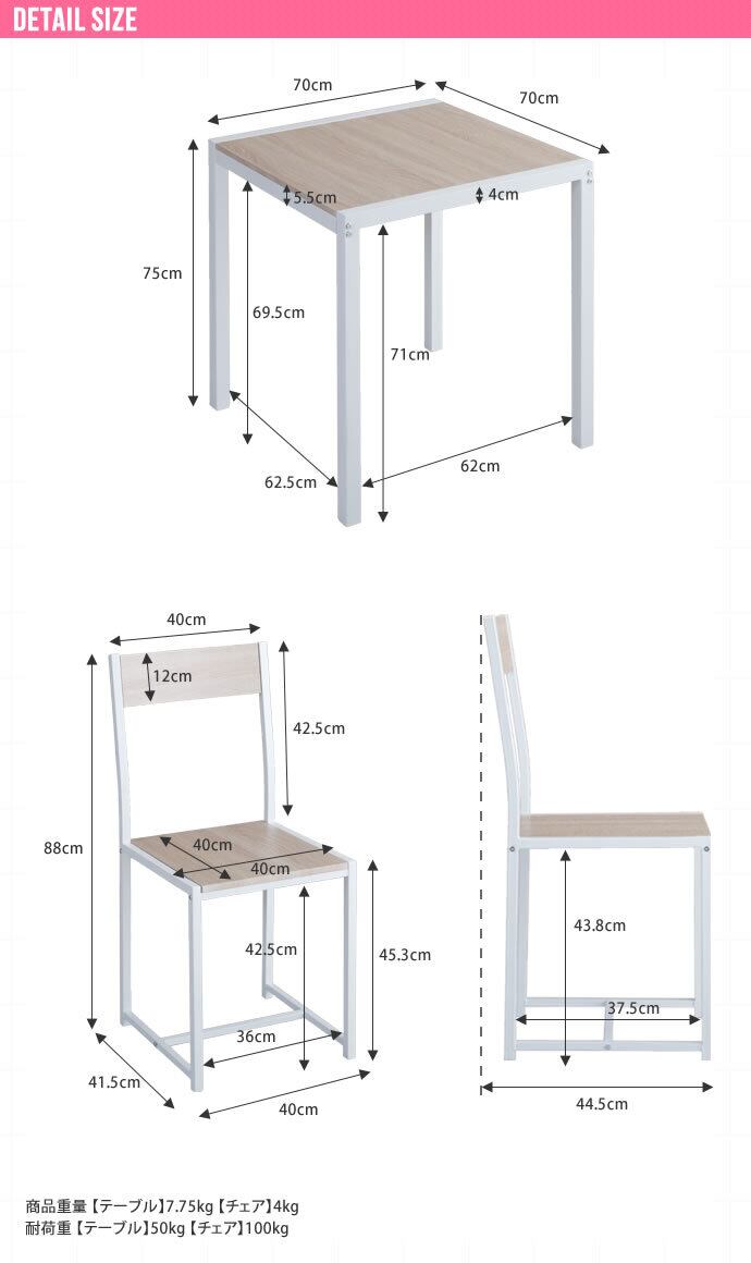 【商品重量】テーブル:約7.75kg、チェア:約4kg