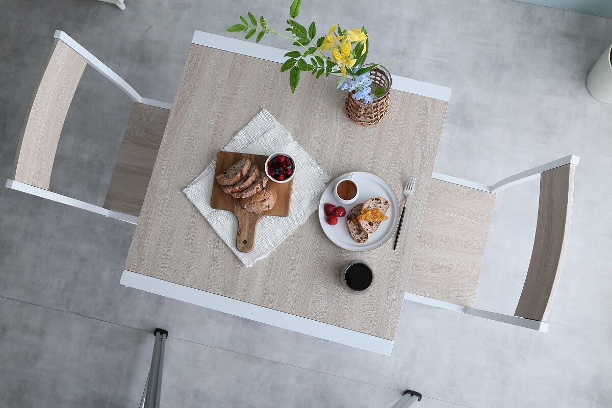 限られたスペースでも使いやすいCary 幅70cmテーブル+チェア2脚の3点セットが新登場!ちょっとしたダイニングスペースにぴったりのコンパクトなサイズで、お部屋のレイアウトにも馴染みます。シンプルでモダンなデザインなので、どんなインテリアにもマッチしますよ。