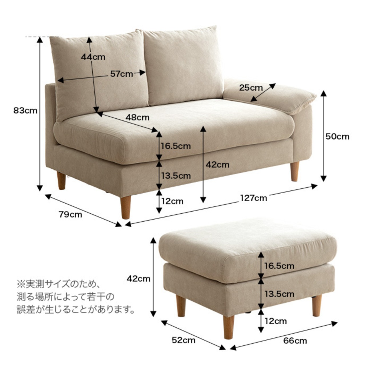 【ソファ】幅127cm×奥行79cm×高さ83cm(座面高:42cm)