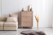 品のある框デザインと柔らかなニュアンスカラーが印象的な"Calan(カラン)"シリーズのチェストです。幅60cmとコンパクトなサイズ感で、小さなお部屋や狭いスペースにも置きやすい設計となっています。