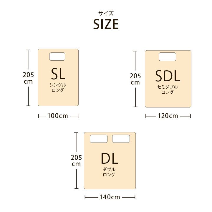 約100×205cm(シングル)/約120×205cm(セミダブル)/約140×205cm(ダブル)