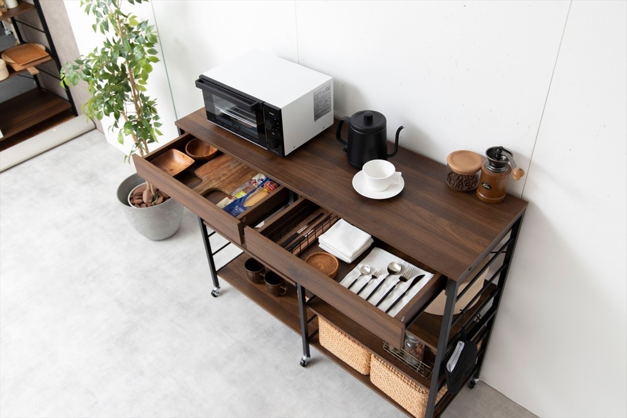 『Cammy(キャミー)』のレンジラックは、厳選された素材を使用しています。美しさと耐久性を両立させるために、強度のあるメタルフレームと高品質のウッドトップを採用しています。そのため、長く愛用することができ、キッチンのインテリアとしても映えるアイテムです。