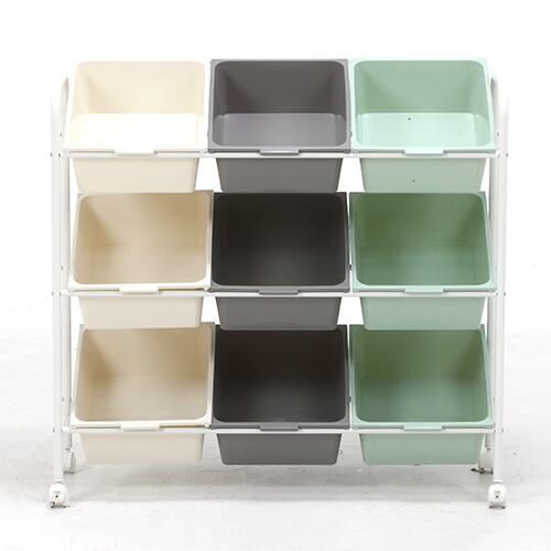 キッズが楽しみながら整理整頓ができる、カラフルで可愛らしいキッズラックをご紹介します。9つのマスに分かれており、おもちゃや洋服、本などを分けて収納できます。ボックスが斜めに配置されているので、お子様でも簡単に取り出したり収納したりできます。