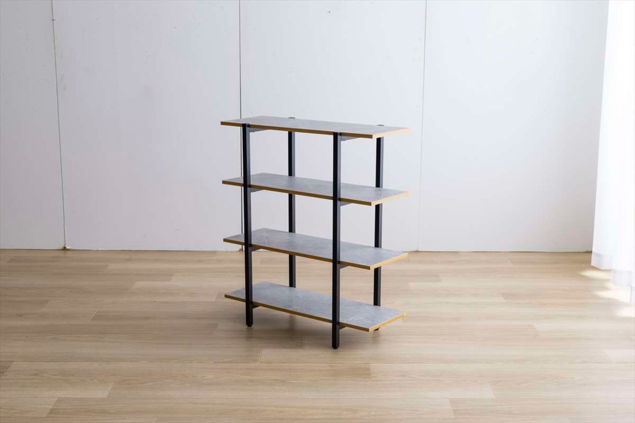 棚板の幅が広い、幅70cmのPesciオープンラック4段。木目調とストーン調の組み合わせがおしゃれでインテリアになじみやすく、使い勝手も抜群です。リビングや寝室、キッチンなど、どんなお部屋にも違和感なくマッチするスタイリッシュなデザインです。
