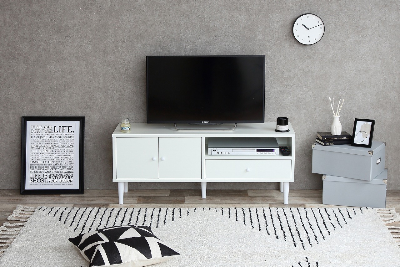 シンプルで飽きのこないデザインが特徴のSasha テレビボード。幅110cmというコンパクトなサイズながらも、収納力は抜群です。テレビ周りの機器やDVD、書籍などをすっきり収納することができ、リビングをすっきりと片付けることができます。機能性だけでなく、シンプルなデザインはお部屋に馴染みやすく、どんなインテリアにもマッチします。