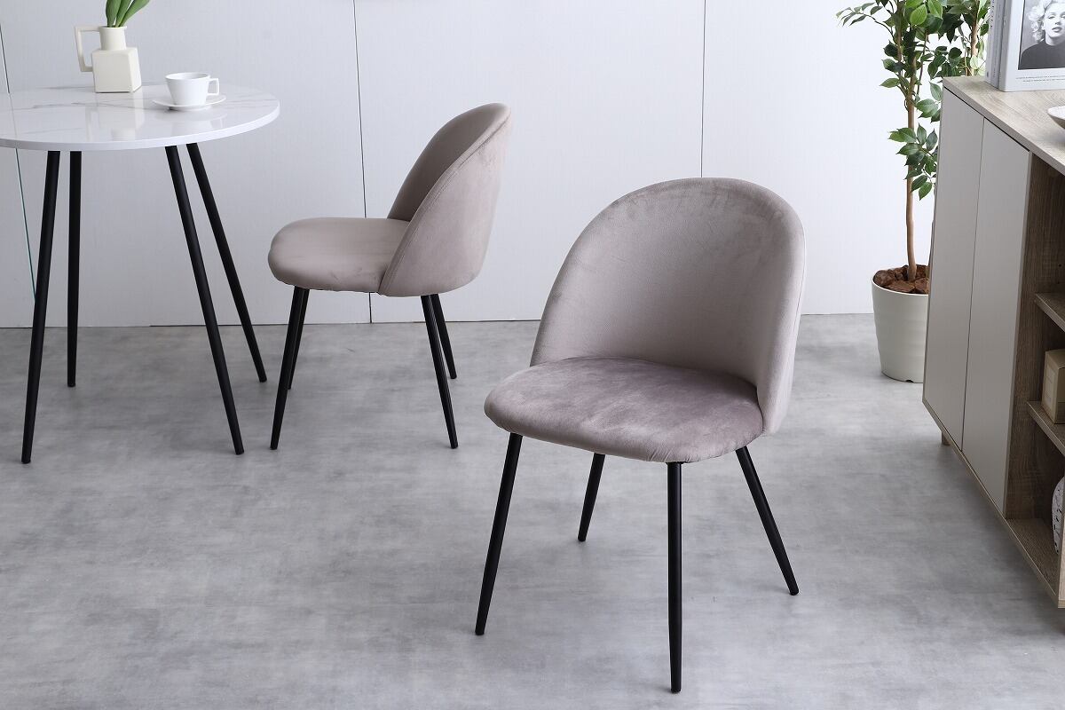大人の雰囲気を漂わせるMia(ミア)のベロアダイニングチェアをご紹介します。ベロア素材とマットなブラックアイアンの組み合わせが、上品でモダンな雰囲気を演出します。シンプルで洗練されたデザインは、どんなインテリアにもマッチし、お部屋を一層引き立ててくれます。