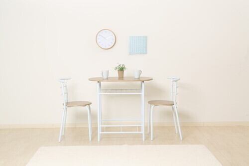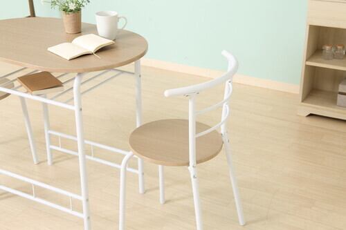 テーブルもチェアも丸みを帯びた柔らかい印象のダイニングセットです。