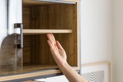 【耐荷重】天板:約5kg、ガラス扉収納(可動棚・底板):各約5kg、スパイスラック:約5kg、スチールバー:約5kg、オープン収納(可動棚):約5kg、スライドトレー:約10kg、引き出し収納:約8kg