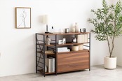 幅広い収納スペースと引き出し付きの『Carter(カーター)』シェルフラック。ヴィンテージ感漂うデザインで、お部屋に温かみとアンティークな雰囲気をプラスします。105cmという幅広いサイズで、本やCDなど様々なアイテムをスッキリと収納できるのがポイントです。引き出しもついているので、小物や書類なども整理整頓が可能。見せる収納としても活躍する一品です。
