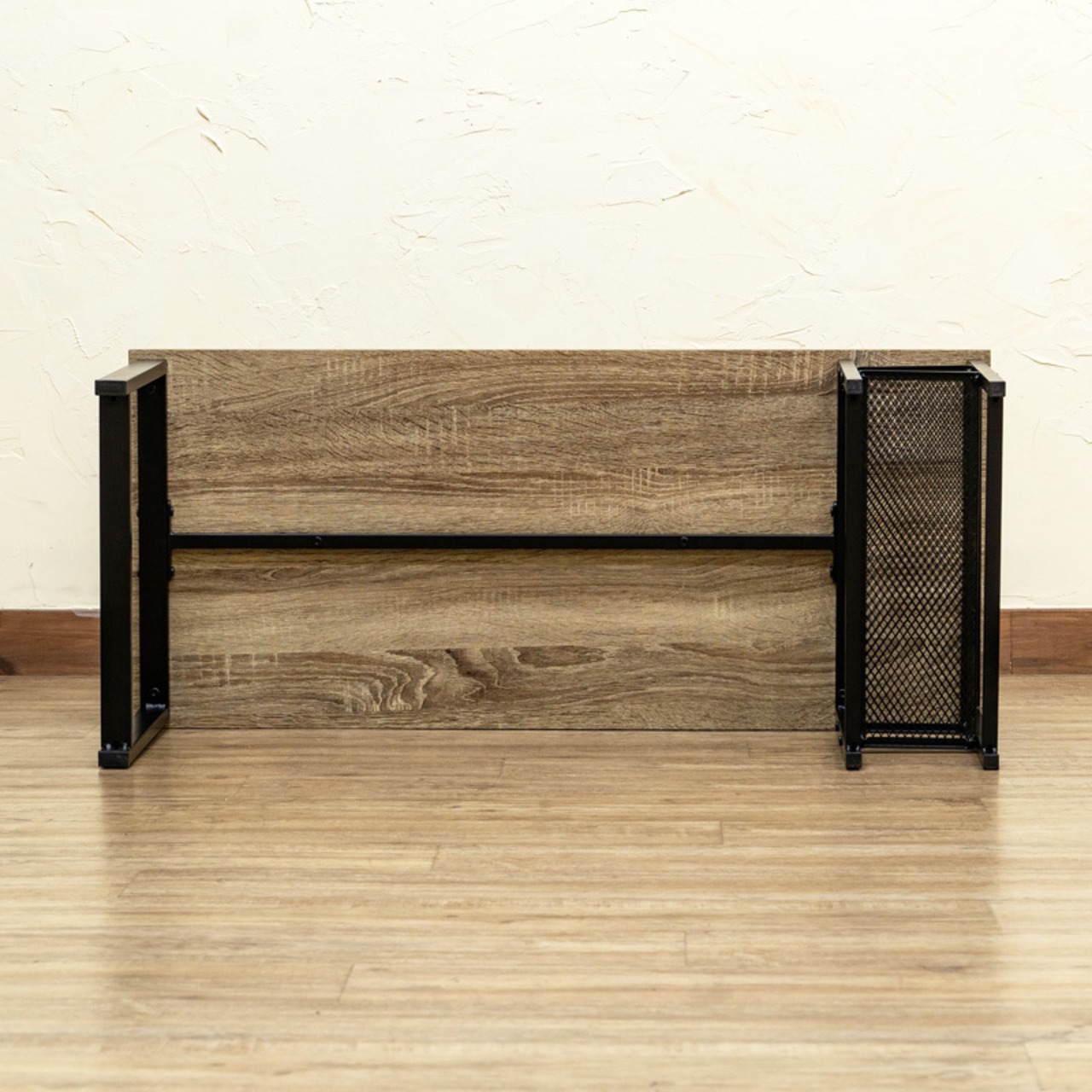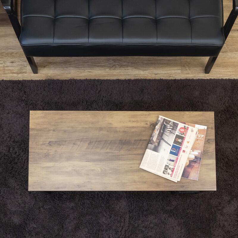 スチール脚と木目調天板を組み合わせた、アンティークな風合いのセンターテーブルです