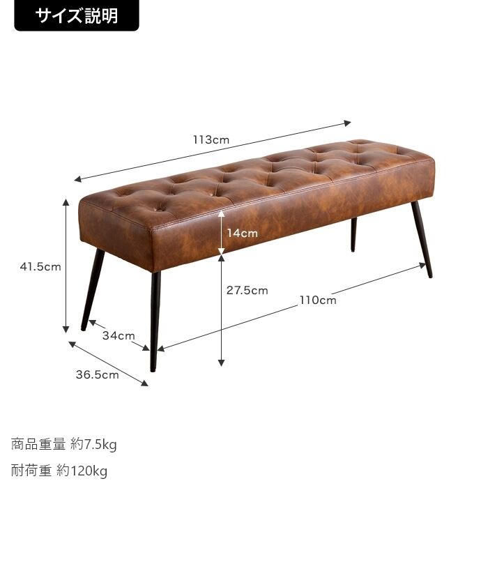 Albie ダイニングベンチは、幅広110cmのスペースをゆったりと座れる重厚感が魅力の一品です。ヴィンテージ感漂うデザインで、どんなリビングやダイニングにも馴染みます。木製の脚は丈夫で安定感があり、長時間の座り心地も快適です。アンティーク調の仕上げが、お部屋に上質な雰囲気をもたらします。