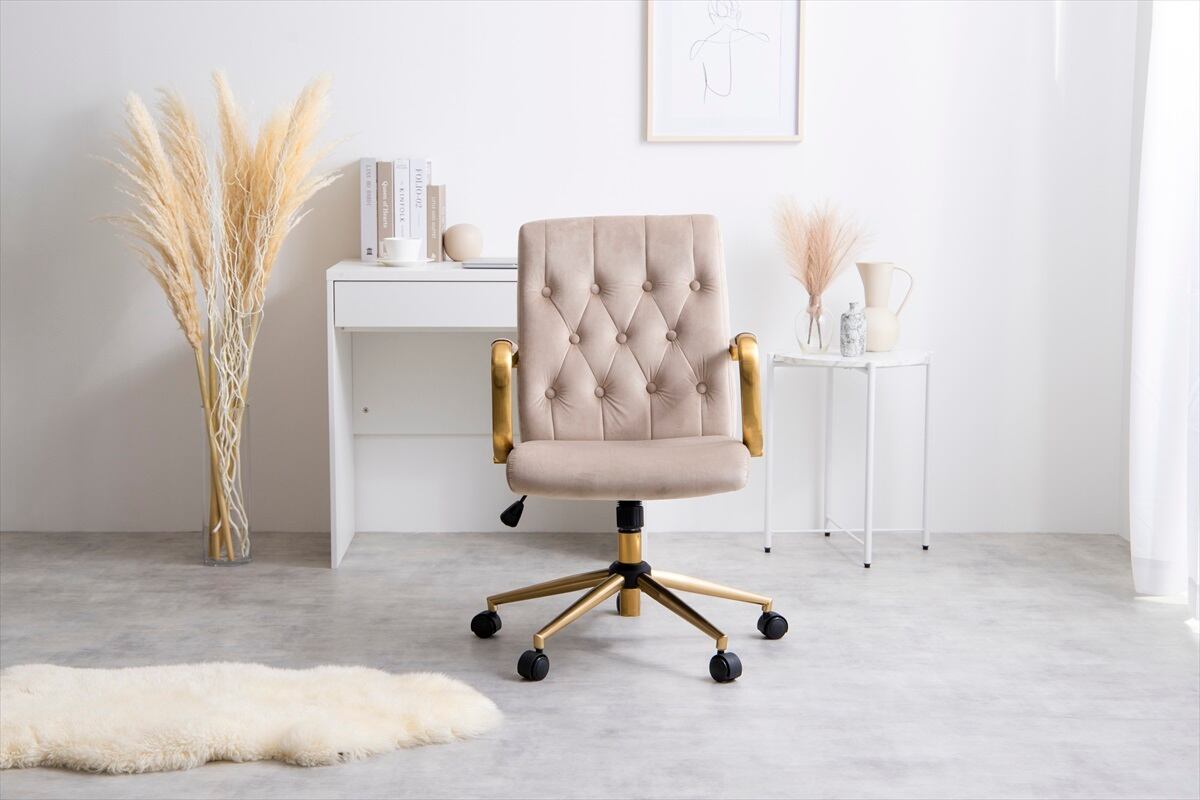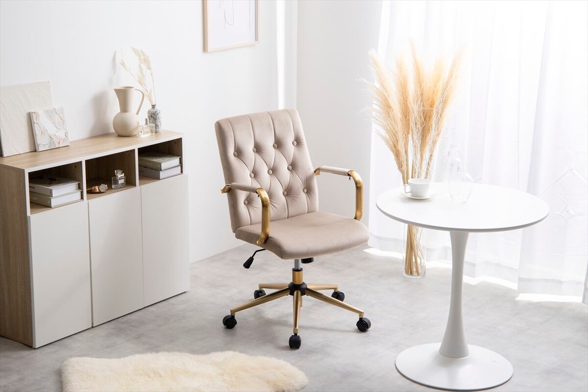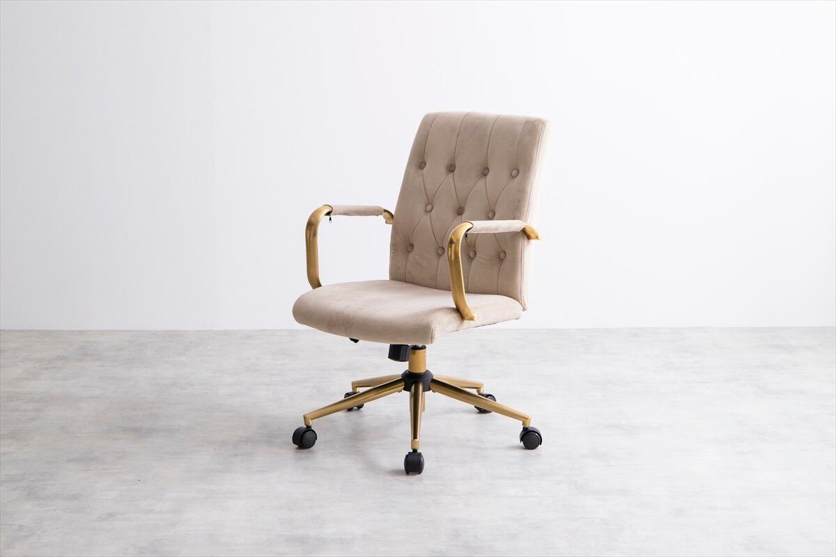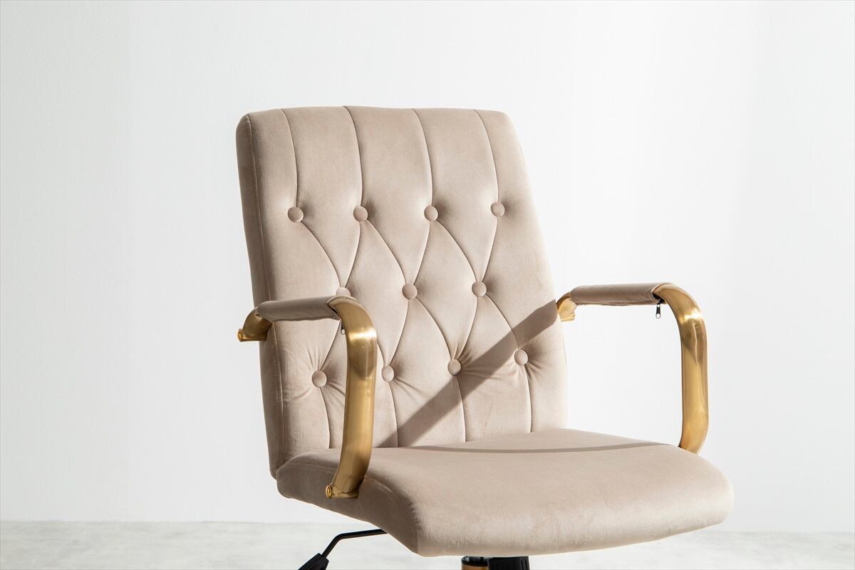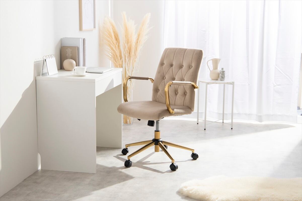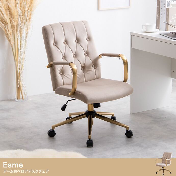 クラシカルな佇まいで大人可愛い『Esme(エスメ)』アーム付ベロアデスクチェア。上品なベロア生地としっかりとしたアームレストが特徴で、長時間のデスクワークでも快適な座り心地を実現します。モダンなインテリアにもマッチするデザインで、お部屋をより一層上品に演出してくれます。