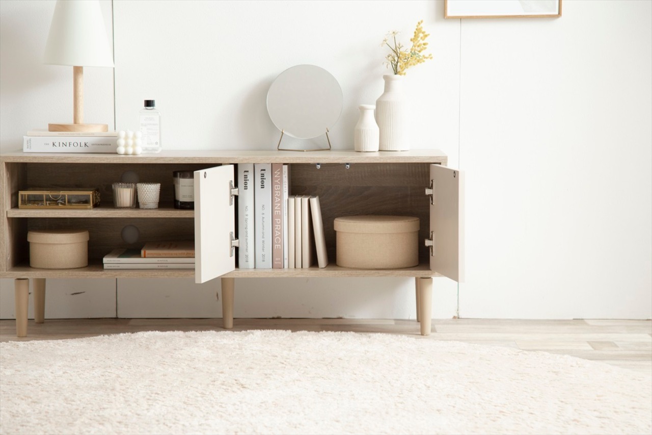 【幅120cm】Erin バイカラーテレビボードは、ナチュラルモダンな印象で、お部屋のアクセントアイテムとして活躍します!洗練されたバイカラーのデザインが、リビングの雰囲気を一新し、くつろぎの空間を演出します。