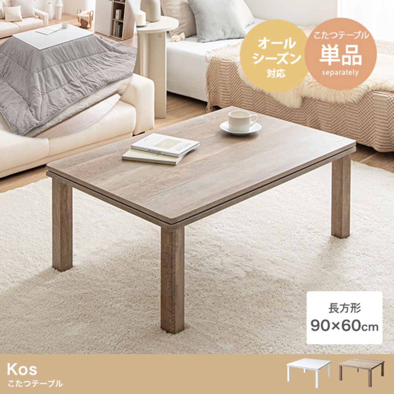 【長方形:天板 90cm×60cm】Kos こたつテーブル