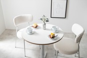 「Stjerne」のカフェテーブルは、ミニマルでありながらも上品な印象があり、どんなインテリアにも自然に調和します。幅70cmのコンパクトなサイズは、リビングやダイニング、ワークスペースなど多様なシーンで活躍し、お一人様のティータイムからお友達とのおしゃべりまで、様々なシーンを支えます。この素晴らしいカフェテーブルをお部屋に取り入れることで、居心地の良い特別な空間を作り上げます。