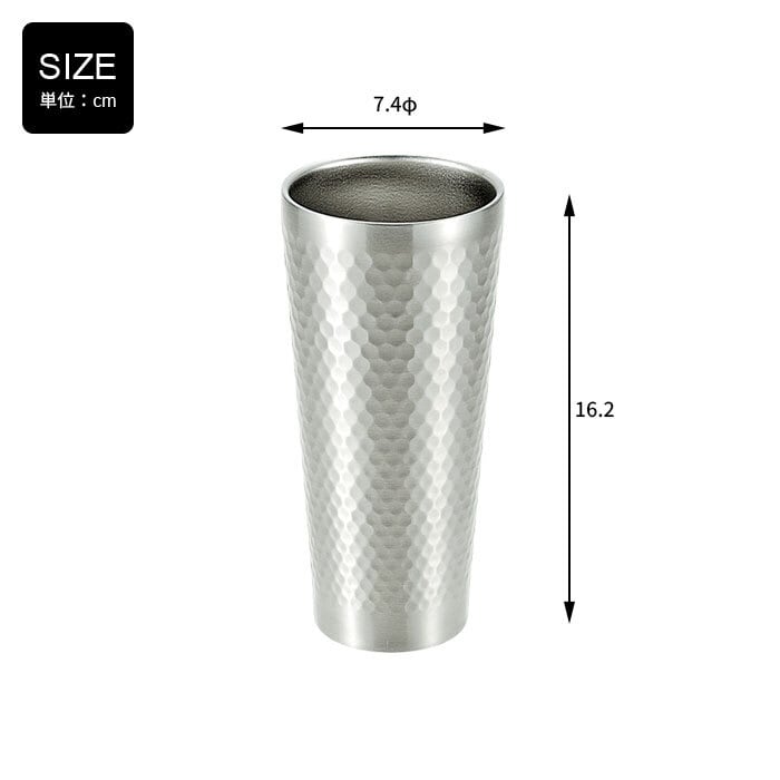 スマートなシルエットに存在感が際立つ槌目模様のタンブラー。