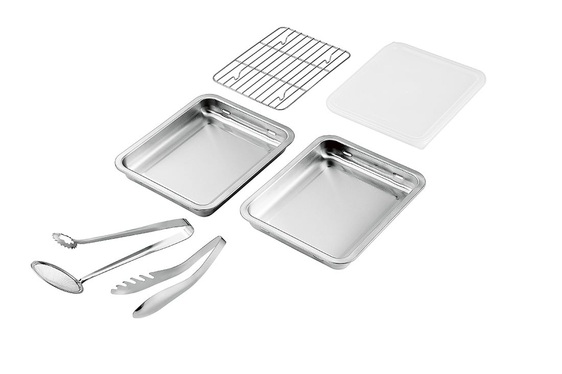 調理の下ごしらえや、付属の網を使えば油切りも簡単にできます。