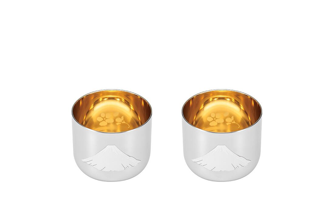 内面は金メッキで、底には桜の花びらがデザインされています。