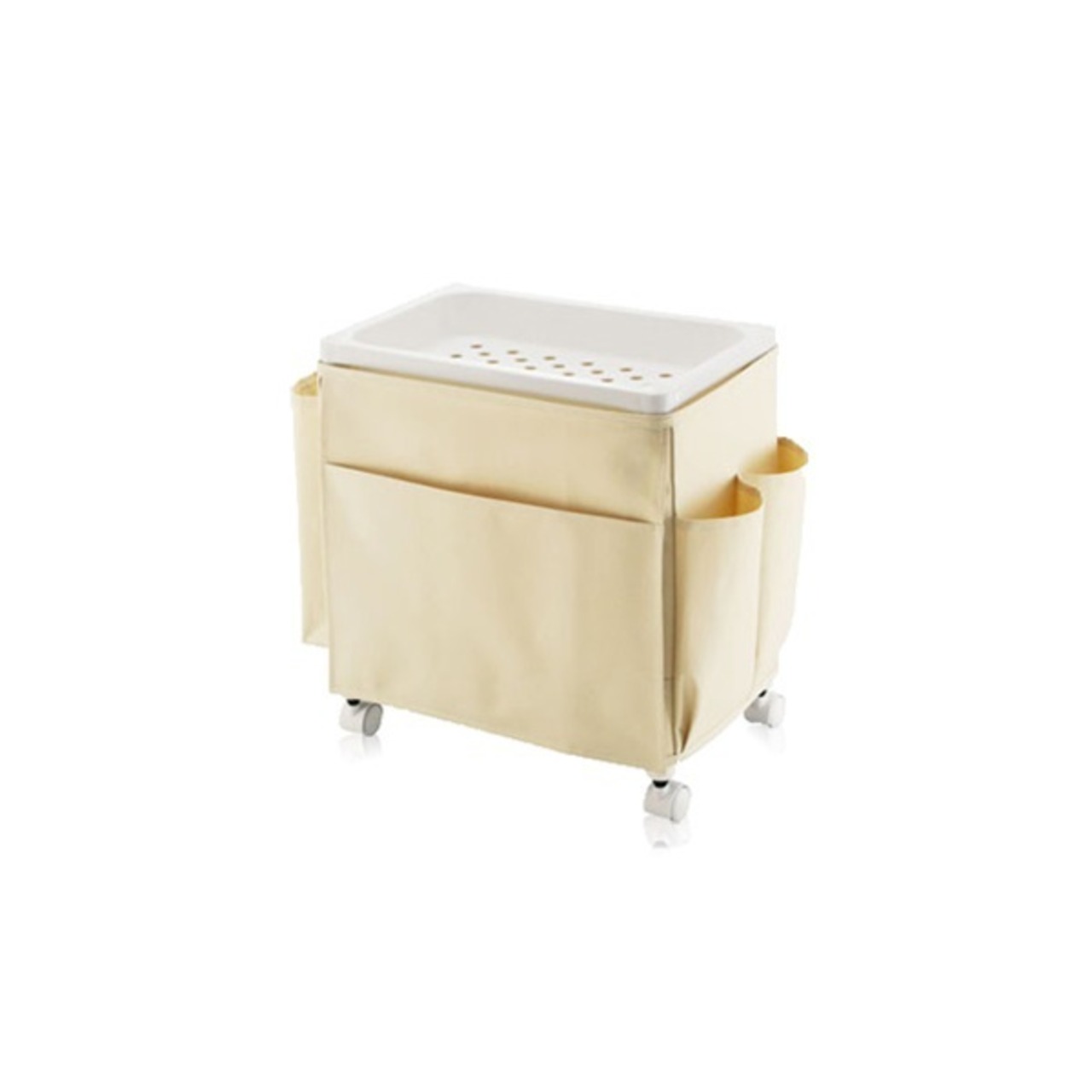 ワゴン内部には大きな収納スペースがあり、かさのある小物類をたっぷり収納でき、カバー付きで外からの目も気になりません。