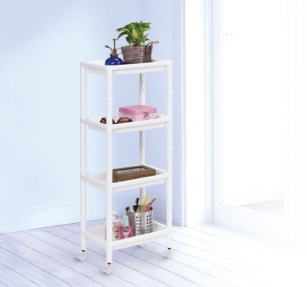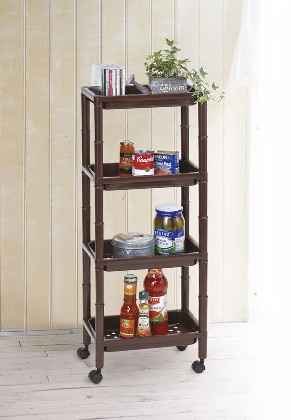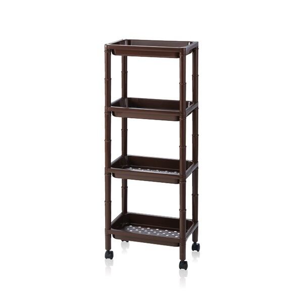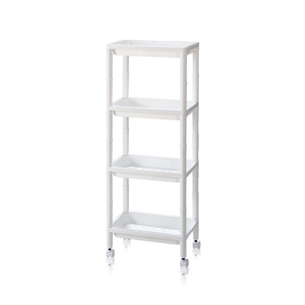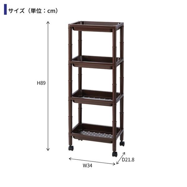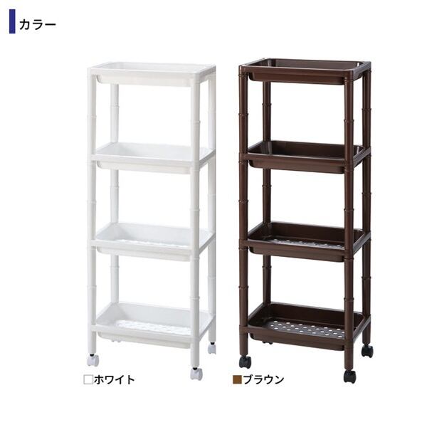 お部屋の小物収納に便利な「4段ミニラック W」。キッチン、リビング、サニタリーなど、あらゆるスペースで活躍します!用途に合わせて棚の高さをアレンジでき、使い方は自由自在。このミニラックは、差し込むだけの簡単組立で、手軽にセットアップできるのも魅力です。移動に便利なキャスター付きなので、お部屋のレイアウト変更もラクラク行えます。使わないときはコンパクトにまとめられるため、スペースを無駄にしません。