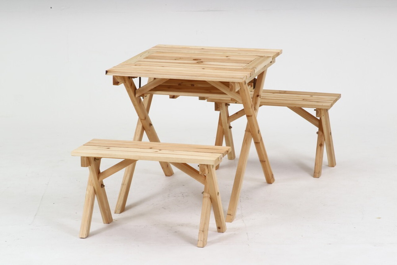 BBQテーブル&ベンチセットミニ コンロスペース付 NA